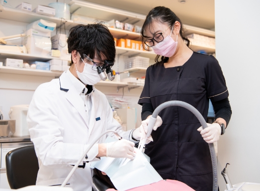 患者様のお口の中だけではなく、表情の変化や体の反応などを確認しながら治療を進めます。無理に治療はせず、患者様に負担がかからないよう心がけています。