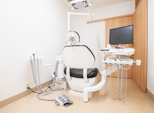 診療室内は、半個室の木目を基調にした清潔感のある明るい空間です。現在、感染予防対策の一環として、イソジンなどで診療前に【うがい】のご協力をお願いしております。